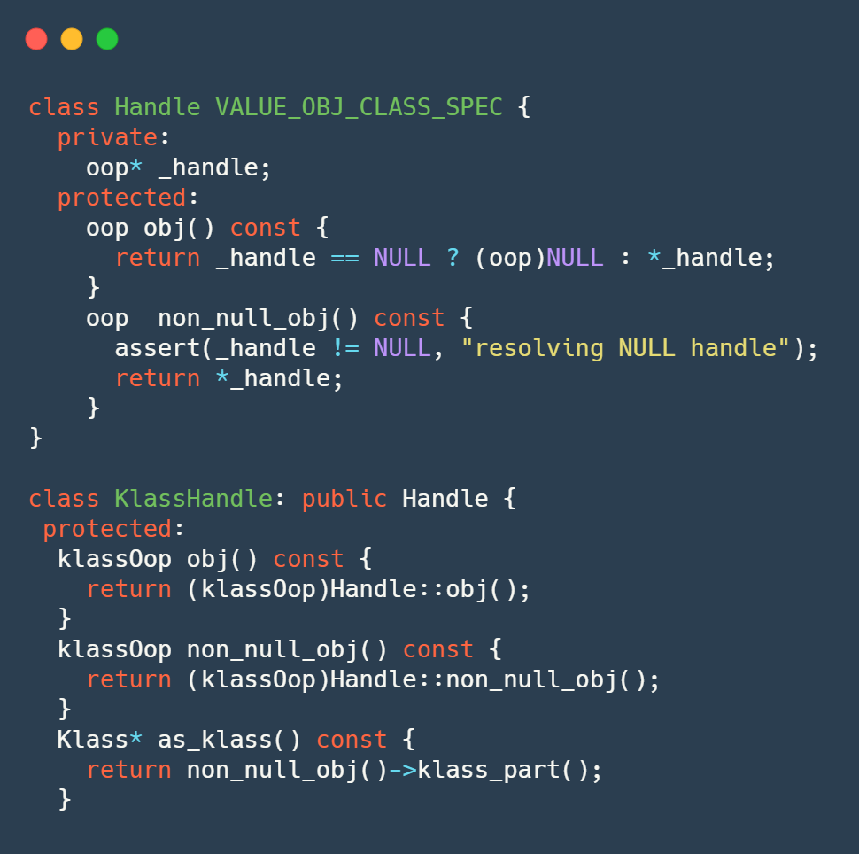 在handles.hpp被编译后,会分别出现oop和klass对应的handle,