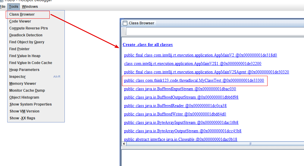 1 | java -cp sa-jdi.jar sun.jvm.hotspot.HSDB |