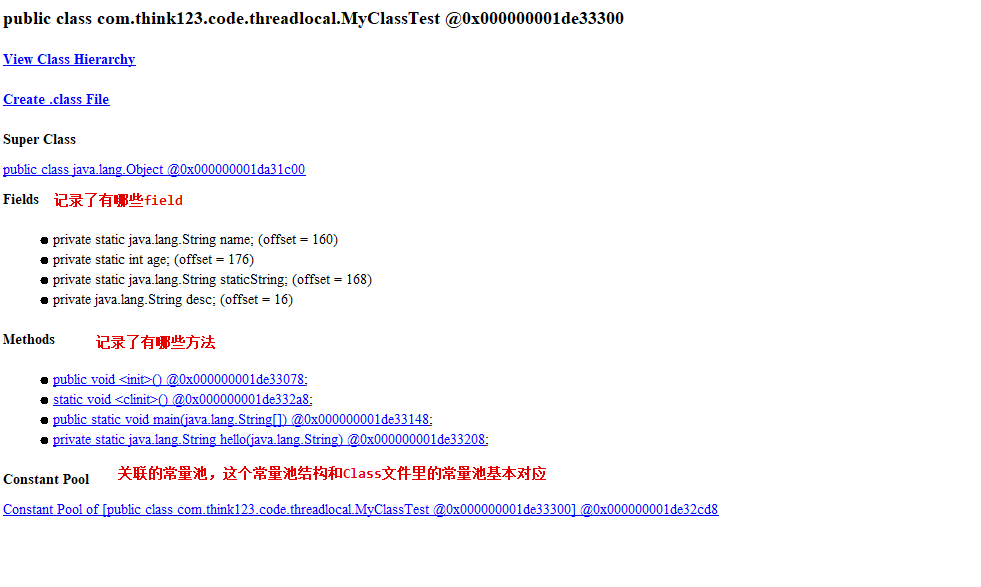 常量池中这是MyClass中的常量(比如引用类全限定名,方法名,常量,LocalNumberTable,LocalVariableTable等)